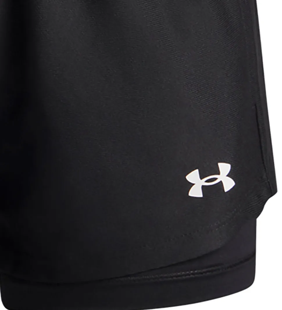 Under Armour sportsshortsene har et smart design, så det ligner et par løse shorts med et par tætsiddende cykelshorts indenunder. I livet har de en bred elastikkant, og i siderne er der praktiske lommer. Sphortsene er lavet i en sporty, glatvævet kvalitet.