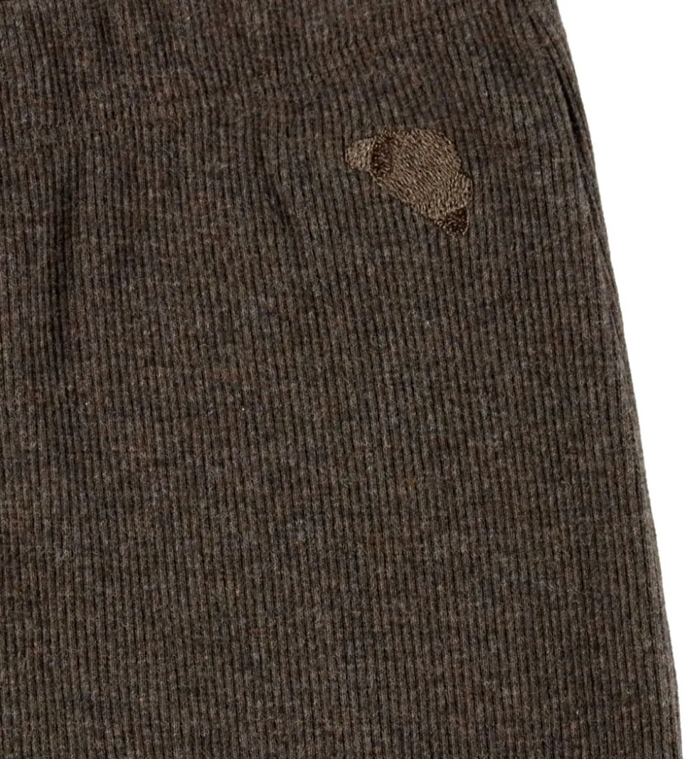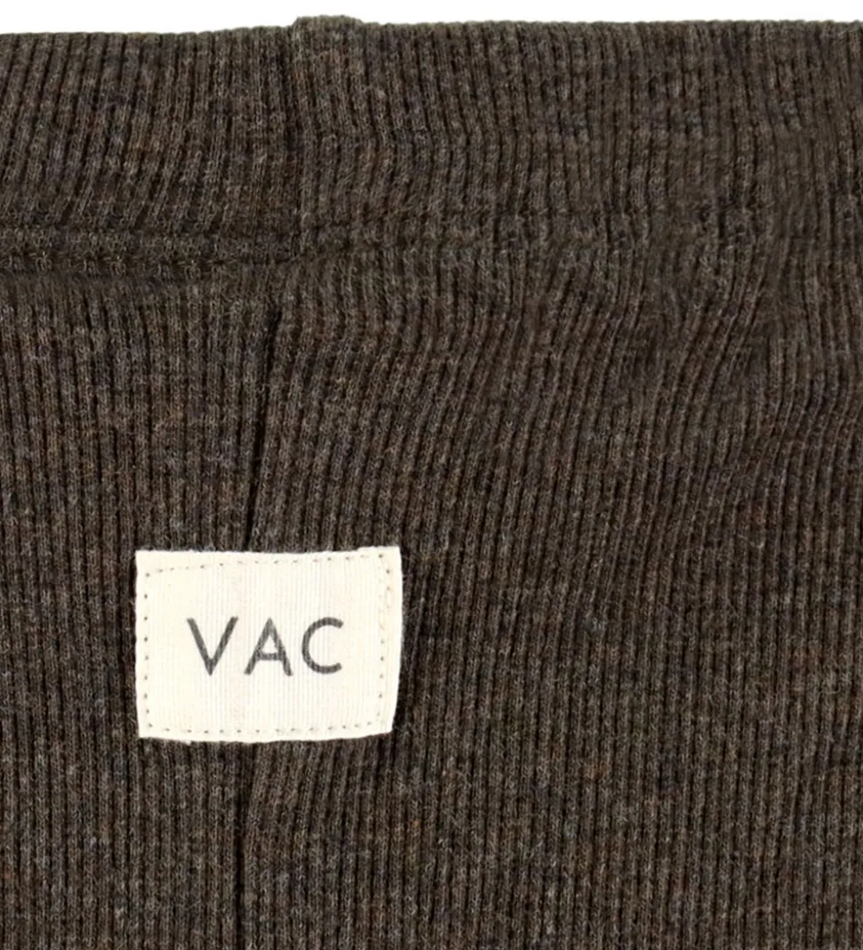 Stilfulde VACVAC leggings i en dyb brun nuance med ribstruktur. VACVAC leggingsene har en elastisk talje og en lille detalje i linningen.