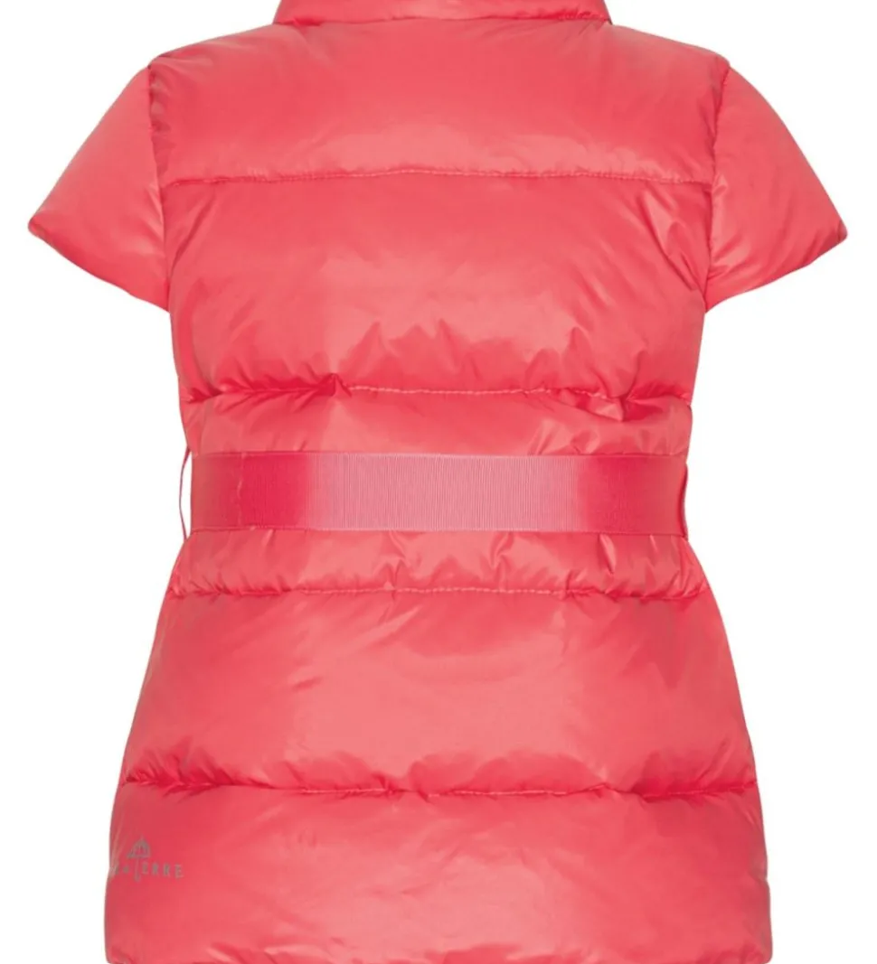Smart Ver de Terre dunvest i mørk pink og med et pink bælte i livet. Dunvesten er lavet i et glatvævet materiale med vandrette syninger, der giver et klassisk dunjakke look.