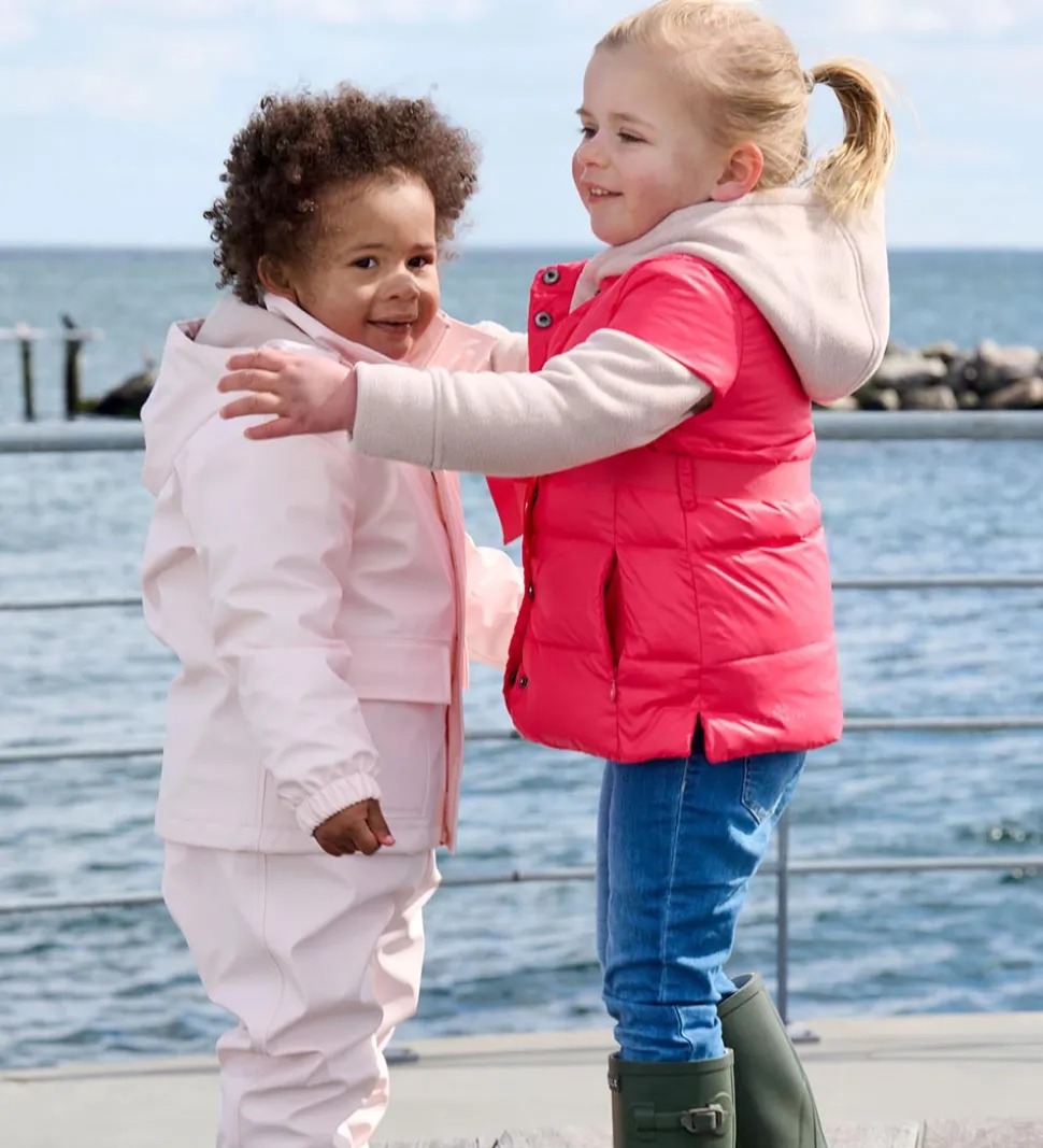 Ver de Terre dunvesten har helt korte ærmer, og den åbnes med mørke metalknapper. I livet er der et fint bælte i en fastvævet kvalitet. Fortil er der to praktiske lommer, som lukkes med en skjult lynlås. Dunvesten er perfekt som ekstra lag på de kølige dage.