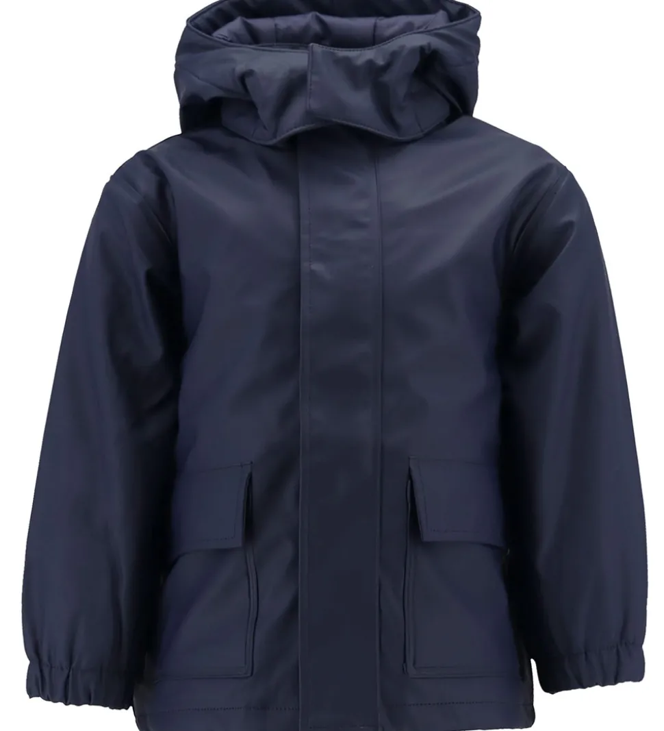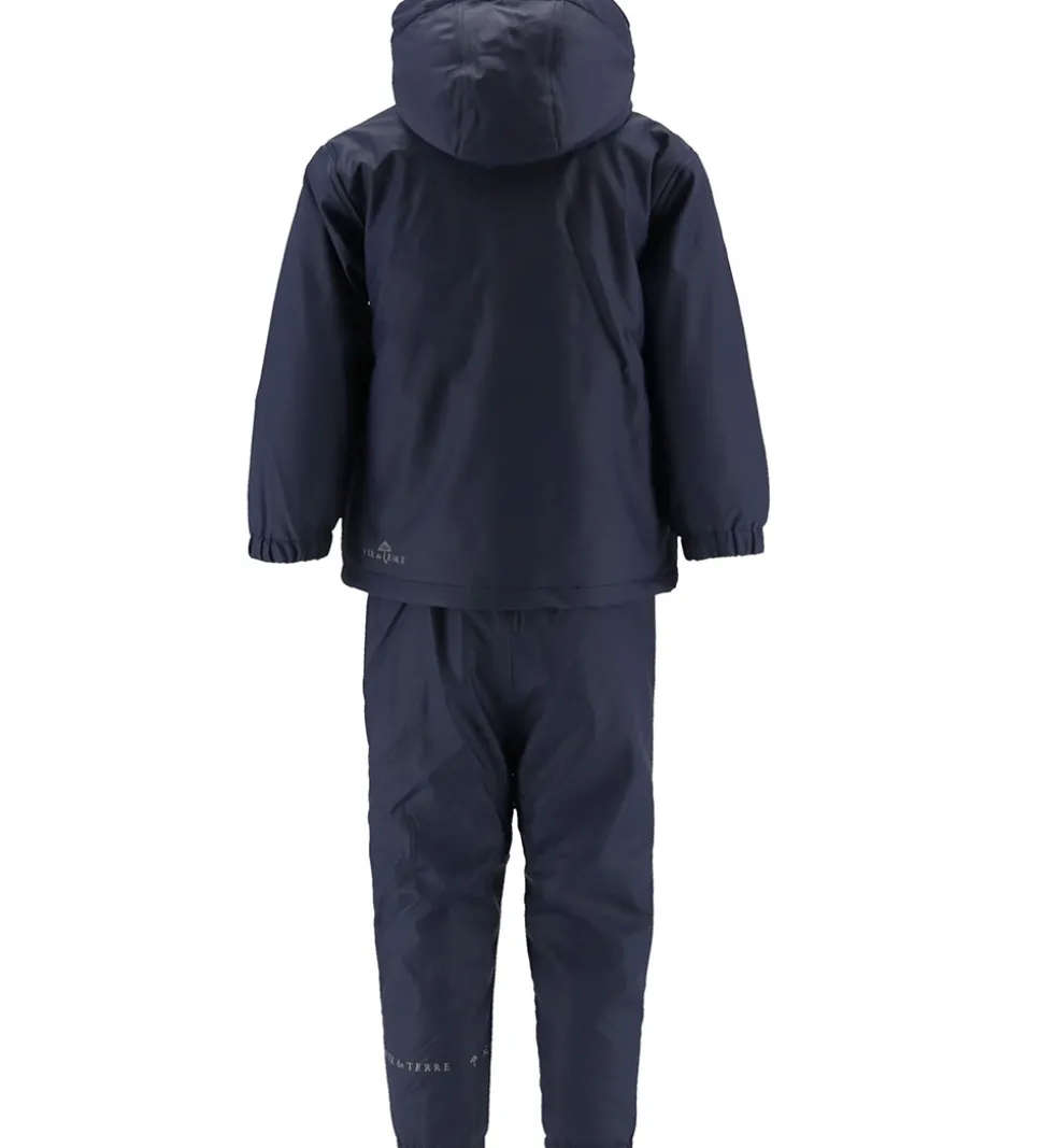 Lækkert Ver de Terre regntøj bestående af en regnjakke og et par regnbukser i ensfarvet navy PU.