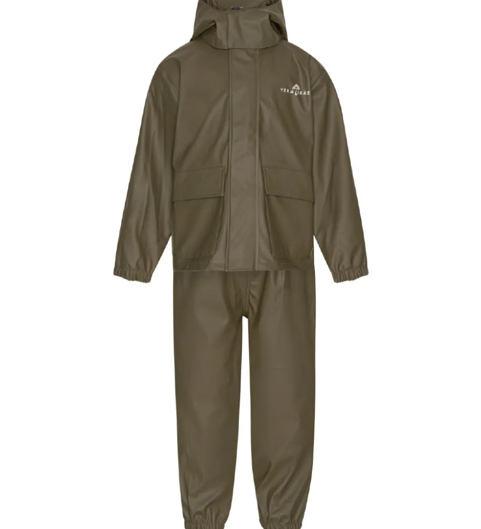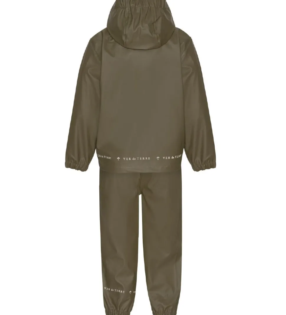 Smart Ver de Terre regntøj bestående af en regnjakke og et par regnbukser i ensfarvet mørkegrøn.