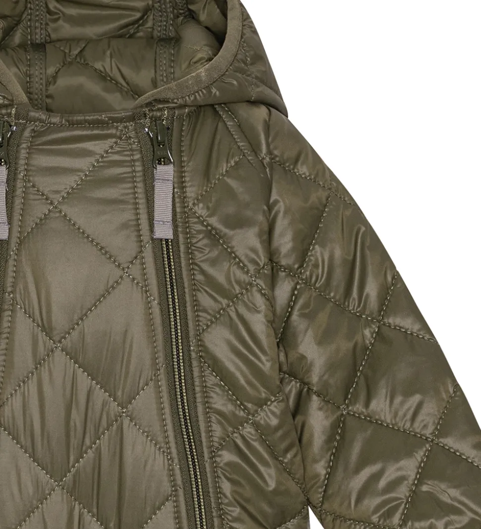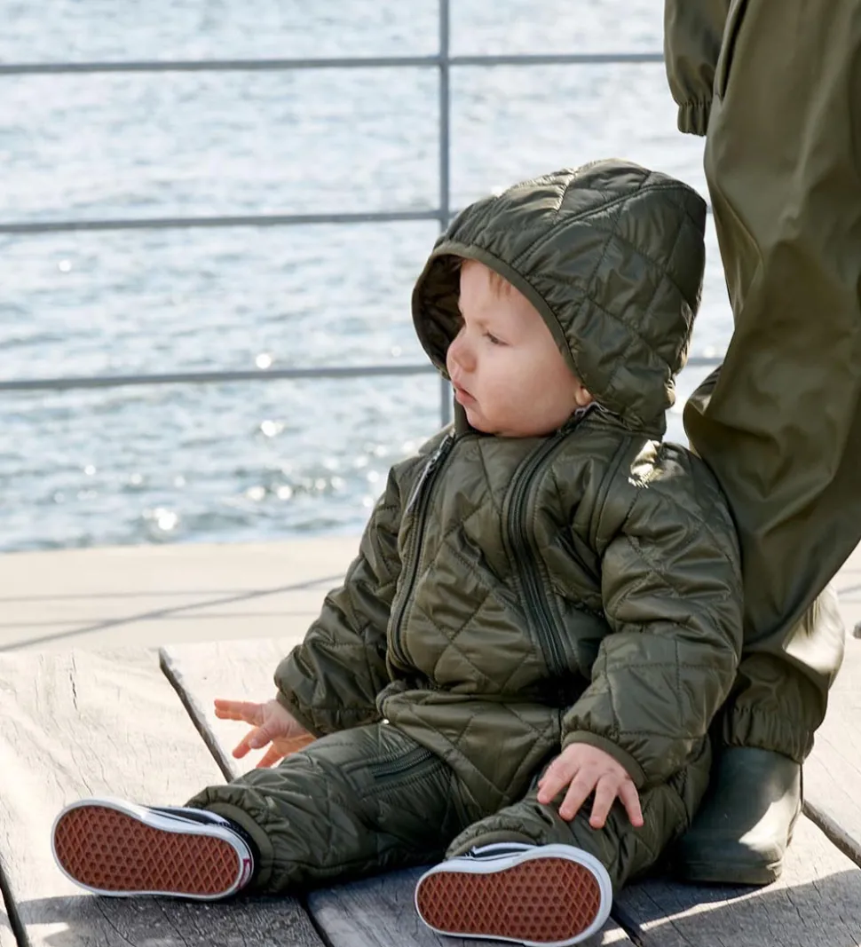 Smart Ver de Terre termodragt i ensfarvet mørk armygrøn i en glatvævet kvalitet og med en vatteret, quiltet struktur.