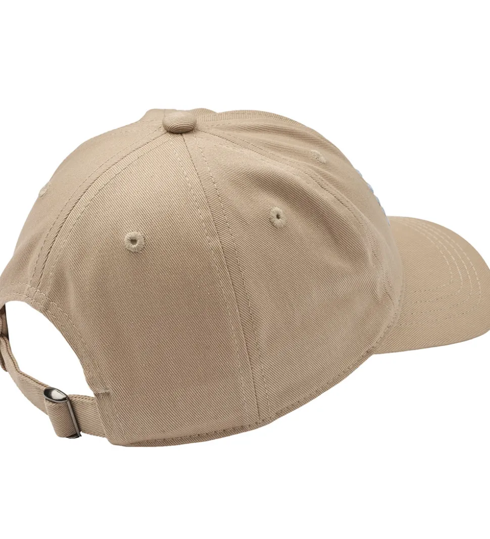 Lækker Wheat kasket i en beige farve med et flot bilprint i blå nuancer på fronten. Kasketten er designet med detaljer, der giver et stilrent look og en god pasform for børn.