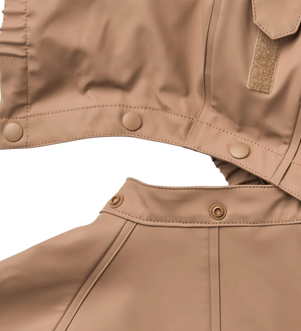 Dejlig Wheat regndragt af PU i ensfarvet nøddebrun.