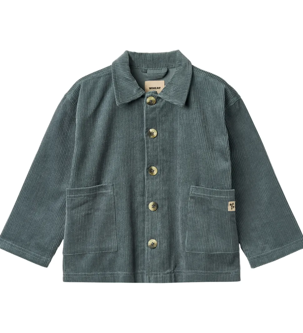 Flot Wheat skjorte i ensfarvet støvet blåt fløjl. Wheat skjorten har lange ærmer og en klassisk krave, der giver et tidløst udtryk. Den lukkes med store knapper, og i siderne sidder der store lommer.