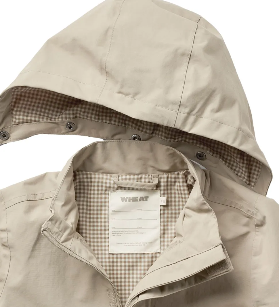 Wheat sommerjakken er en lang parkamodel med slids bagtil i livåbningen. Sommerjakken har en aftagelig hætte, som sidder fast med trykknapper, og i toppen kan den justeres med velcro. Ærmerne har elastikkanter.