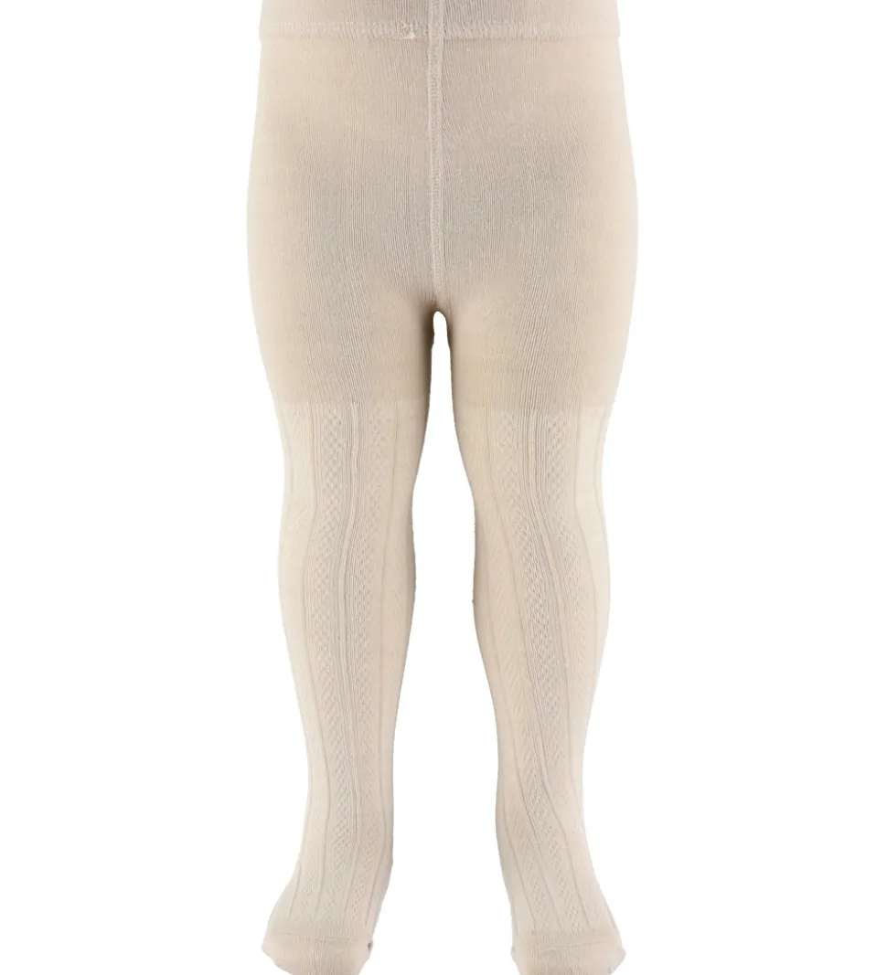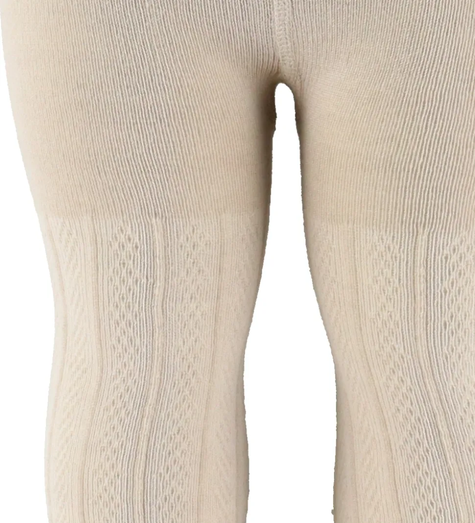 Lækre Wheat strømpebukser i ensfarvet crem i en lun uldkvalitet. Strømpebukserne har et flot mønster fra knæene og ned og er udstyret med en elastisk talje for en god pasform.