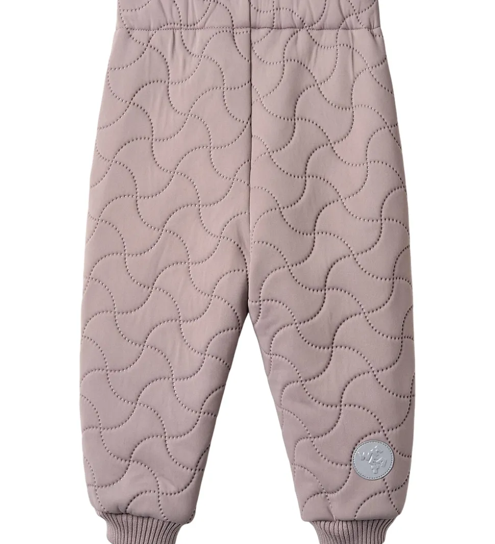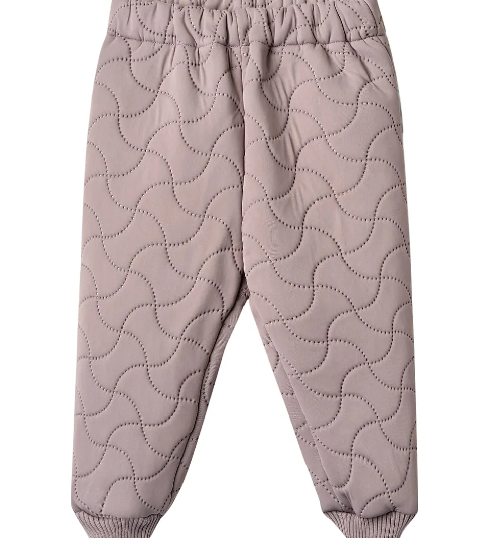 Fine Wheat termobukser i støvet lilla. Termobukserne har en bølgende, quiltet struktur.
