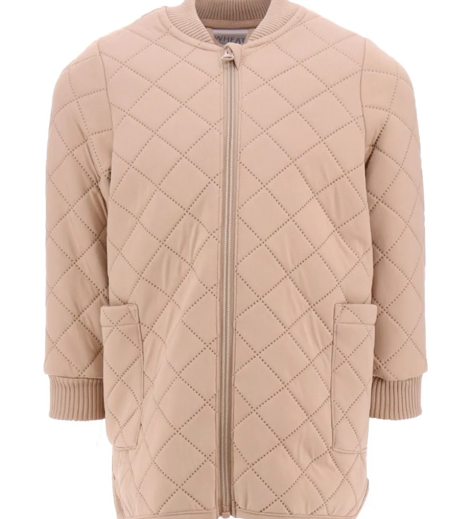 Fin Wheat termojakke i ensfarvet beige med et quiltet mønster.
