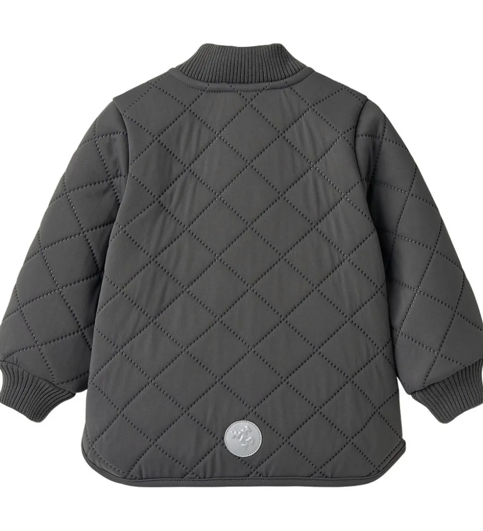 Skøn Wheat termojakke i ensfarvet, mørk koksgrå. Termojakken har en quiltet struktur.