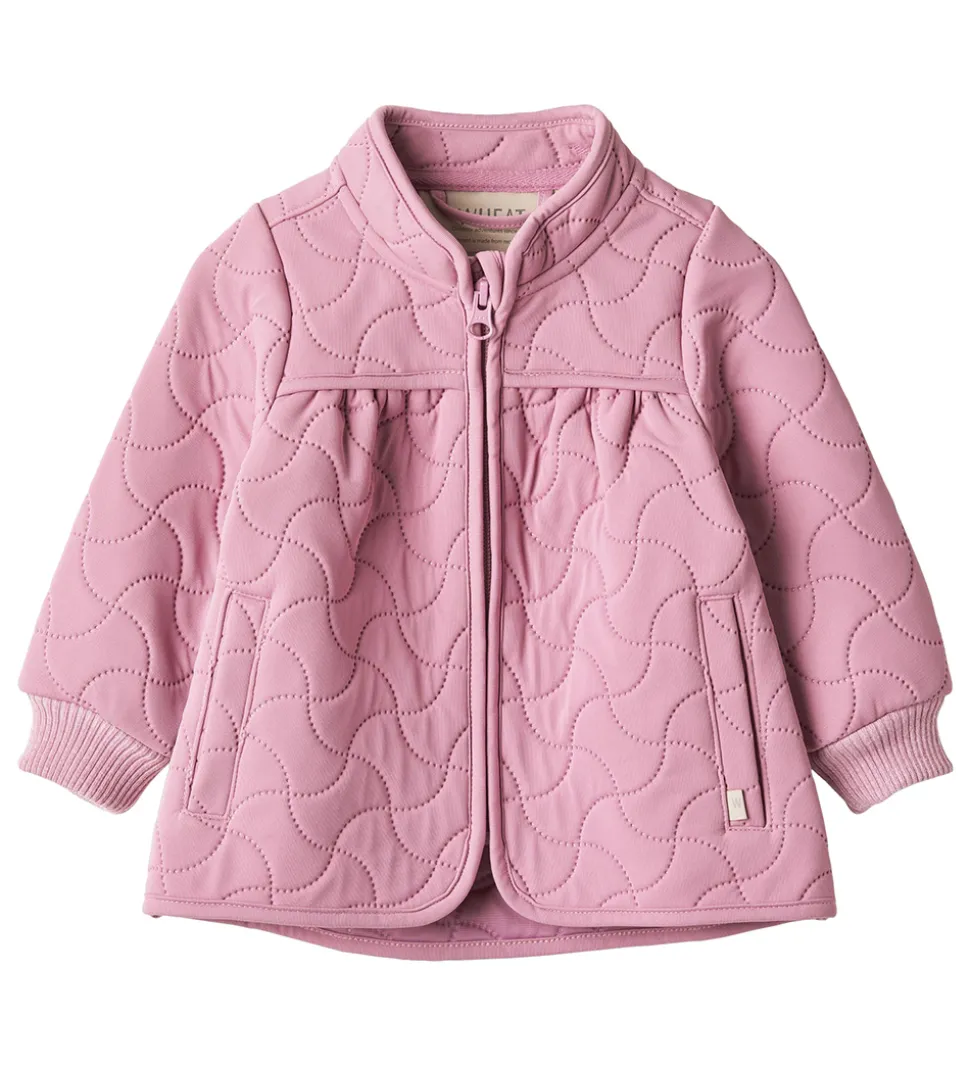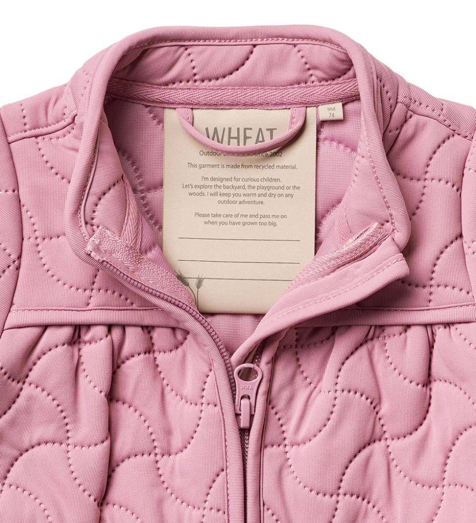 Flot Wheat termojakke i rosa. Termojakken har en bølgende, quiltet struktur.