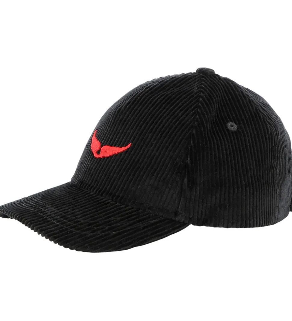 Stilfuld Zadig & Voltaire kasket i sort fløjl med et rødt, broderet logo foran.