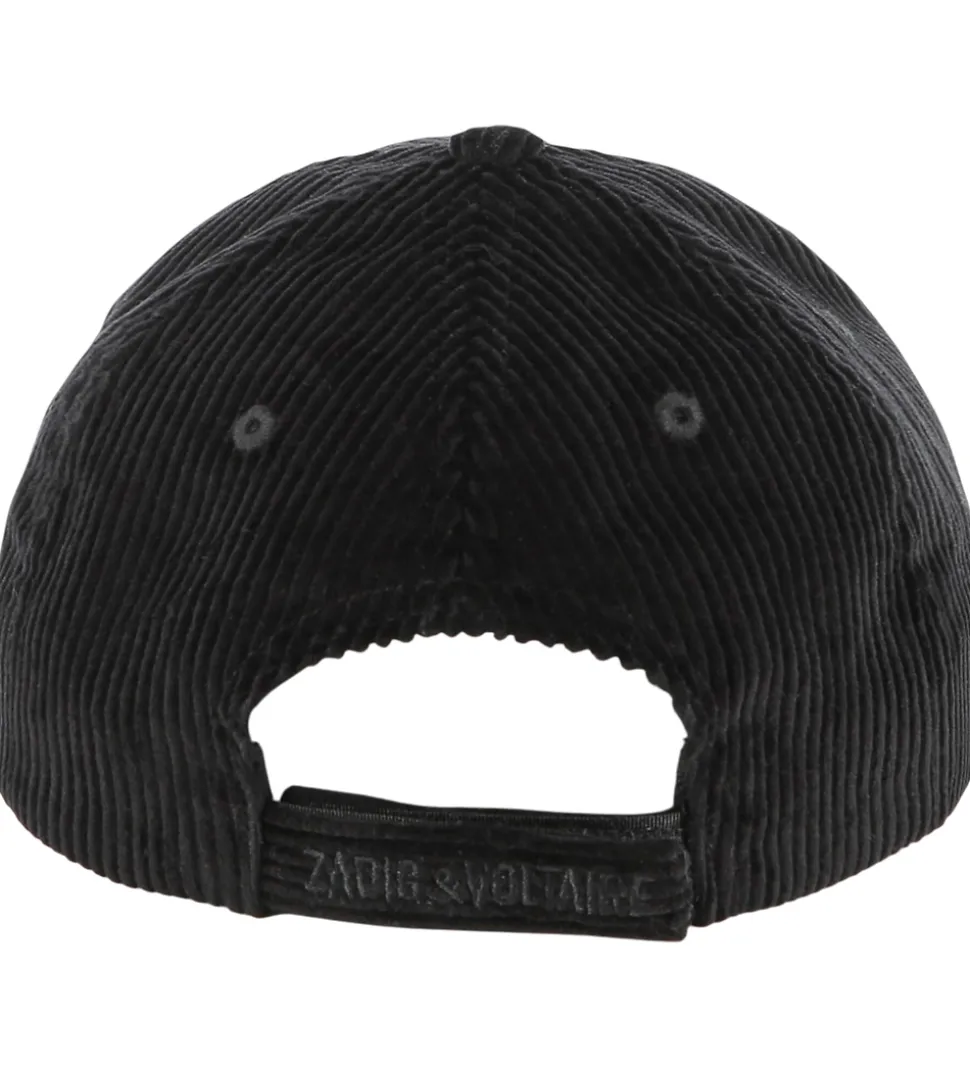Kasketten har en buet skygge, og den strammes ind i nakken med velcro. Strukturens tekstur giver et unikt udtryk, der kendetegner Zadig & Voltaire.